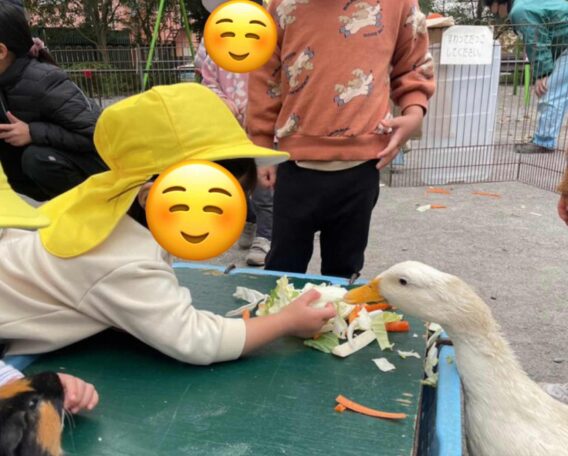 動物村に行ったよ 2025年11月19日 動物村に行ってきました! 触れ合える動物はポニー、うさぎ、ニワトリ、ひよこ、モルモット。 なんと!ポニーの上に乗り、近くを一周回ってきました。 うさぎやモルモットにはにんじんを、アヒルやひよこには葉っぱをそれぞれ餌やりをすることができました! にわとりは飼育員さんが頭の上にのせてくれました。にわとりを見たことはあっても、頭にのせることはできないのでとても貴重な体験となりました!