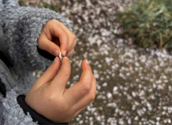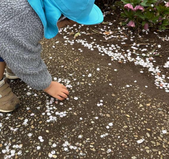 花びらみーつけた! 2026年02月26日 1歳児クラスのお散歩での一コマ。 「あ!!」と床に落ちている梅の花の花びらを、一枚一枚器用に集めてみたり・・・ 「ひらひら~」と降らせて、友達と一緒になって追いかけてみたりと ほっこりあたたかいお散歩での一場面でした♩